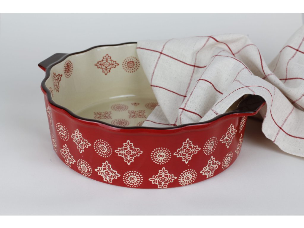Okrúhla zapekacia misa zo série ručne robenej švédskej úžitkovej keramiky, vhodná i na servírovanie.