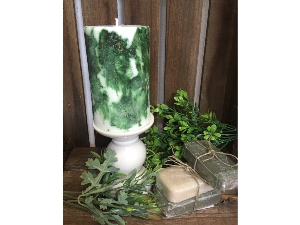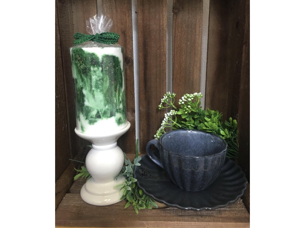Sviečka z palmového vosku, mramorová štruktúra, ručne vkladaná zelená farba.