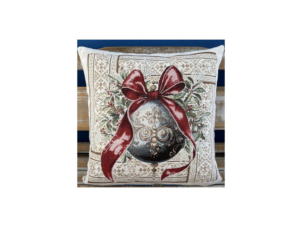 Vianočná obliečka na vankúš, pretkávaná zlaťou niťou, gobelínová, rozmer: 42x42 cm.