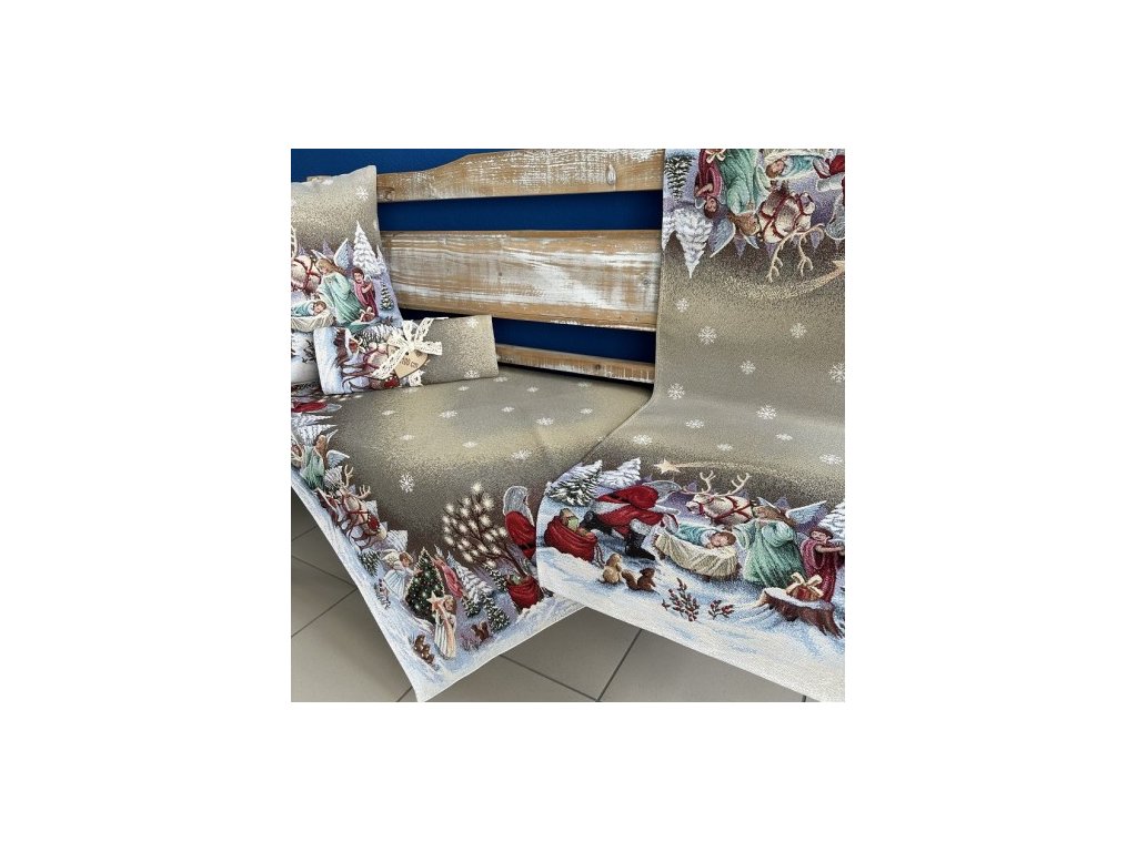Vianočný obrus gobelínový, kruh priemer 140 cm.