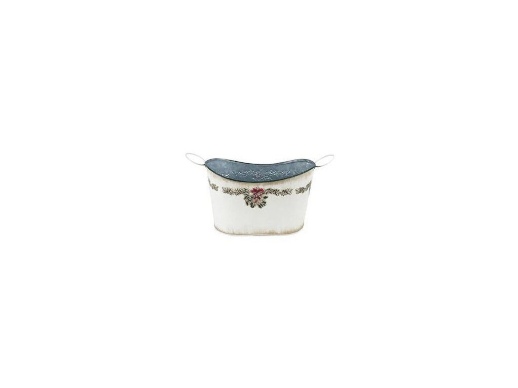 Vianočný plechový obal vo vintage štýle, vhodný na dekorovanie.