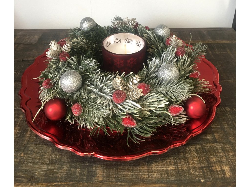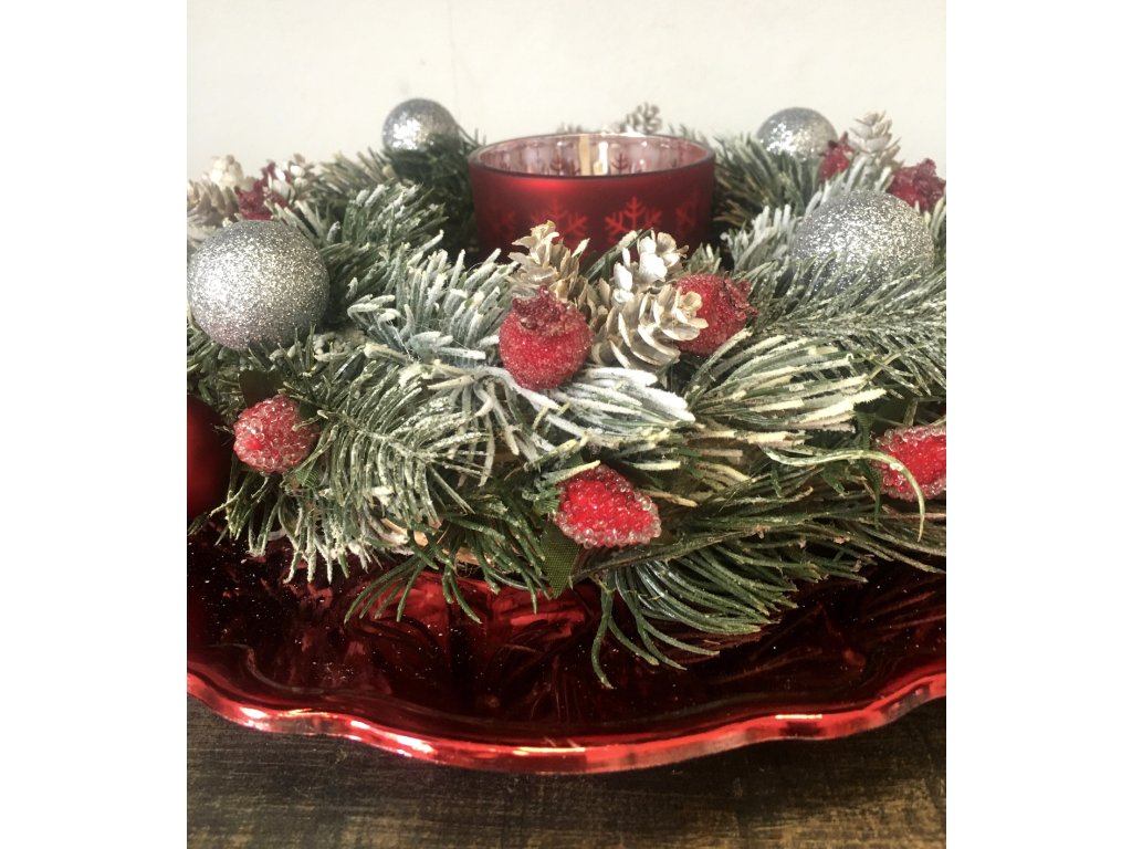 Vianočný veniec z umelej čečiny, so skleneným svietnikom, priemer 35 cm.